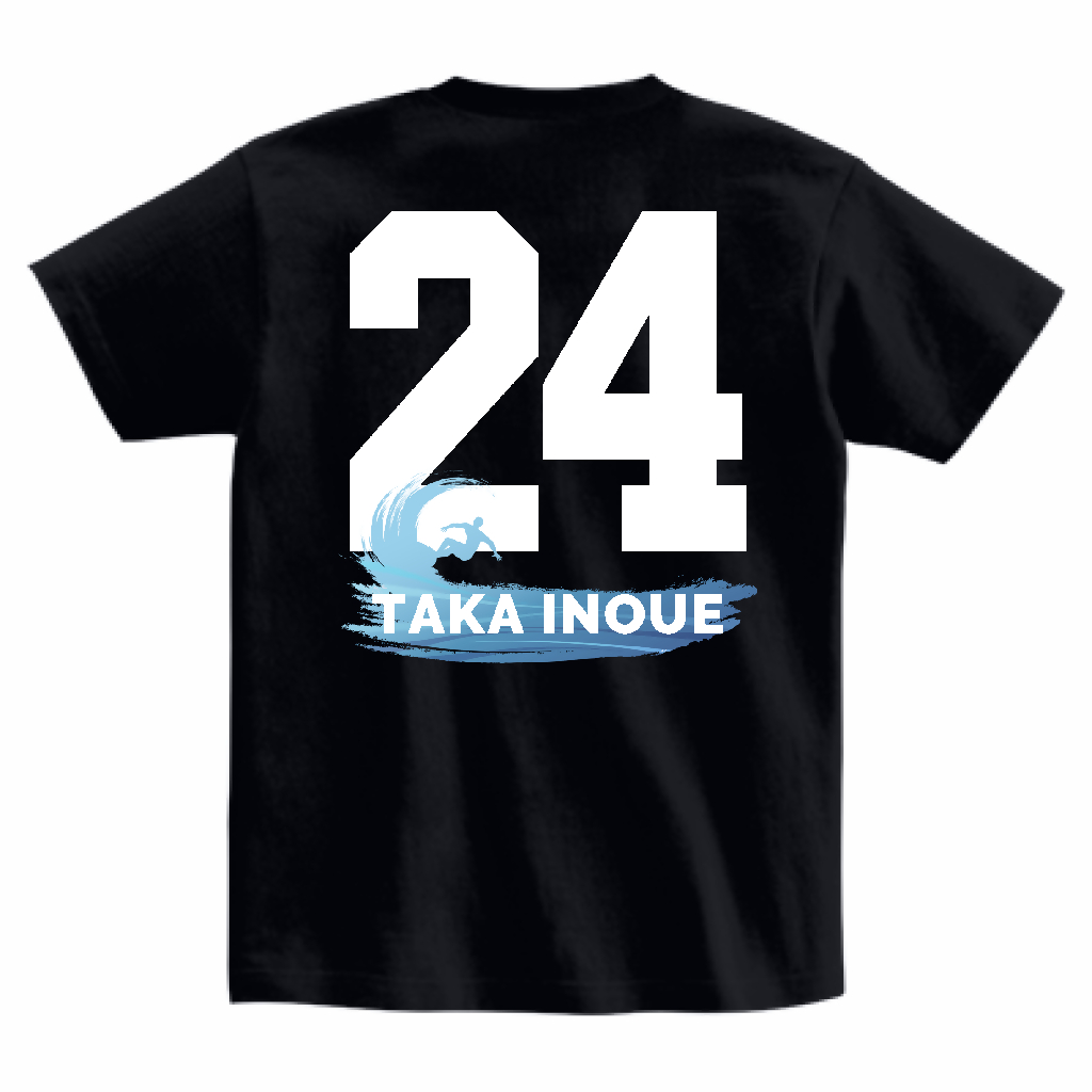 背面にはラッキーナンバーの24と、波に乗る鷹をプリントしています。
