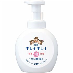キレイキレイ泡ハンドソープから通常本体の2倍入った“本体大型サイズ”新登場!面倒なつめかえが今までの半分の回数(2回に1回)で済みます。●バイ菌を増やさない抗菌ポンプヘッド採用。 ●きちんと殺菌し、バイ菌から手肌を守ります。 ●きめ細かな泡が汚れをすみずみまでキャッチし、しっかりと落とします。 ●すばやい泡切れ、ぬるつかない洗い上がり。【手に香りが残りにくいシトラスフルーティの香り】