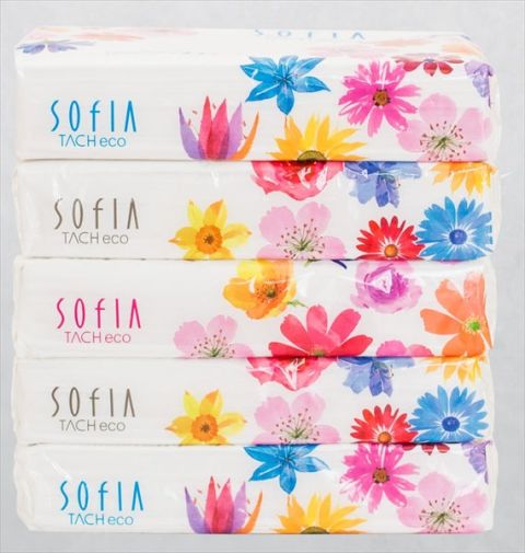 再生原料を使用した環境配慮型ソフトパックティシュ。包装フィルムはバイオマス原料配合品使用、デザインインクにもバイオマス原料を使用してます。牛乳パック類を原料とする紙で、紙の表面にやわらか加工を施しているため、ふんわりしてます。