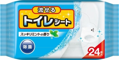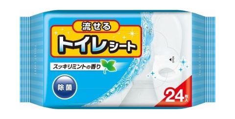 使用後はそのままトイレに流せる水解性シート。除菌剤配合で衛生的。拭いた後もベタつかずサラッとした仕上がりです。